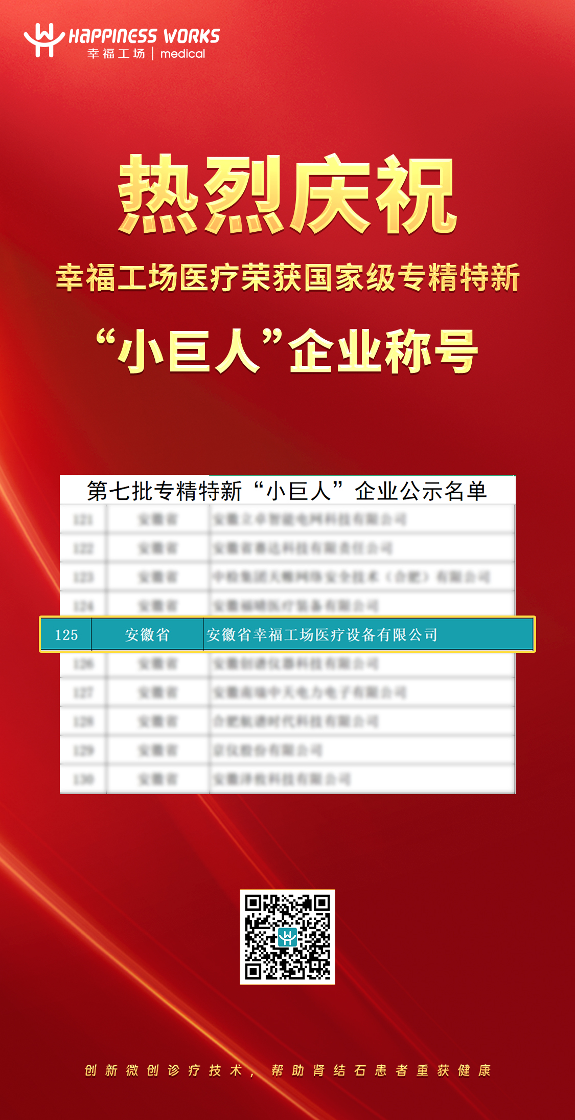 幸福工场医疗凭借卓越的创新驱动力与斐然的市场成就,经过严格评审与层层筛选,荣获国家级专精特新“小巨人”企业称号。 专精特新“小巨人”企业的评选致力于筛选同时满足于专、精、特、新、链、品六个方面指标,考核指标涵盖经济效益、专业化程度、创新能力以及经营管理等多个维度。 幸福工场医疗自2017年成立以来,持续深耕内窥镜诊疗化技术的研发、生产、销售。企业通过消化吸引引进美国硅谷专利技术,已建成持续创新的一次性电子内窥镜系统化诊疗技术研发平台。企业累计申请专利60项,先后获得“国家高新技术企业”“高层次人才团队A类”、“创响中国”安徽省一等奖、“安徽省企业研发中心”等多项资质荣誉,并承担安徽省科技重大专项,致力解决全球内窥镜关键技术痛点。 企业目前设立有安徽研发&生产基地,企业自主研发的一次性内窥镜诊疗化系统突破传统技术瓶颈,实现图像清晰度、操作便捷性与感染控制的全面提升,广泛应用于消化道、呼吸道及泌尿系统等临床场景。凭借持续技术积累与产业化能力,幸福工场医疗已构建覆盖全国的销售服务网络,并加速布局海外市场,推动国产高端医疗器械在全球价值链中的升级。 此次获评国家级专精特新“小巨人”企业,标志着幸福工场医疗在核心技术攻关、产品创新迭代及产业链协同能力方面获得国家层面高度认可。企业将充分发挥“专精特新”小巨人企业的示范引领作用,持续加强研发创新,带动产业链上下游协同发展,推动关键部件与核心材料国产化进程,为国产高端医疗器械整体竞争力的提升而持续助力。 企业秉承着“以问题为导向,从临床中来,到临床中去”的第一性原理,致力成为全球领先的内窥镜系统化诊疗技术的创新者和普及者。